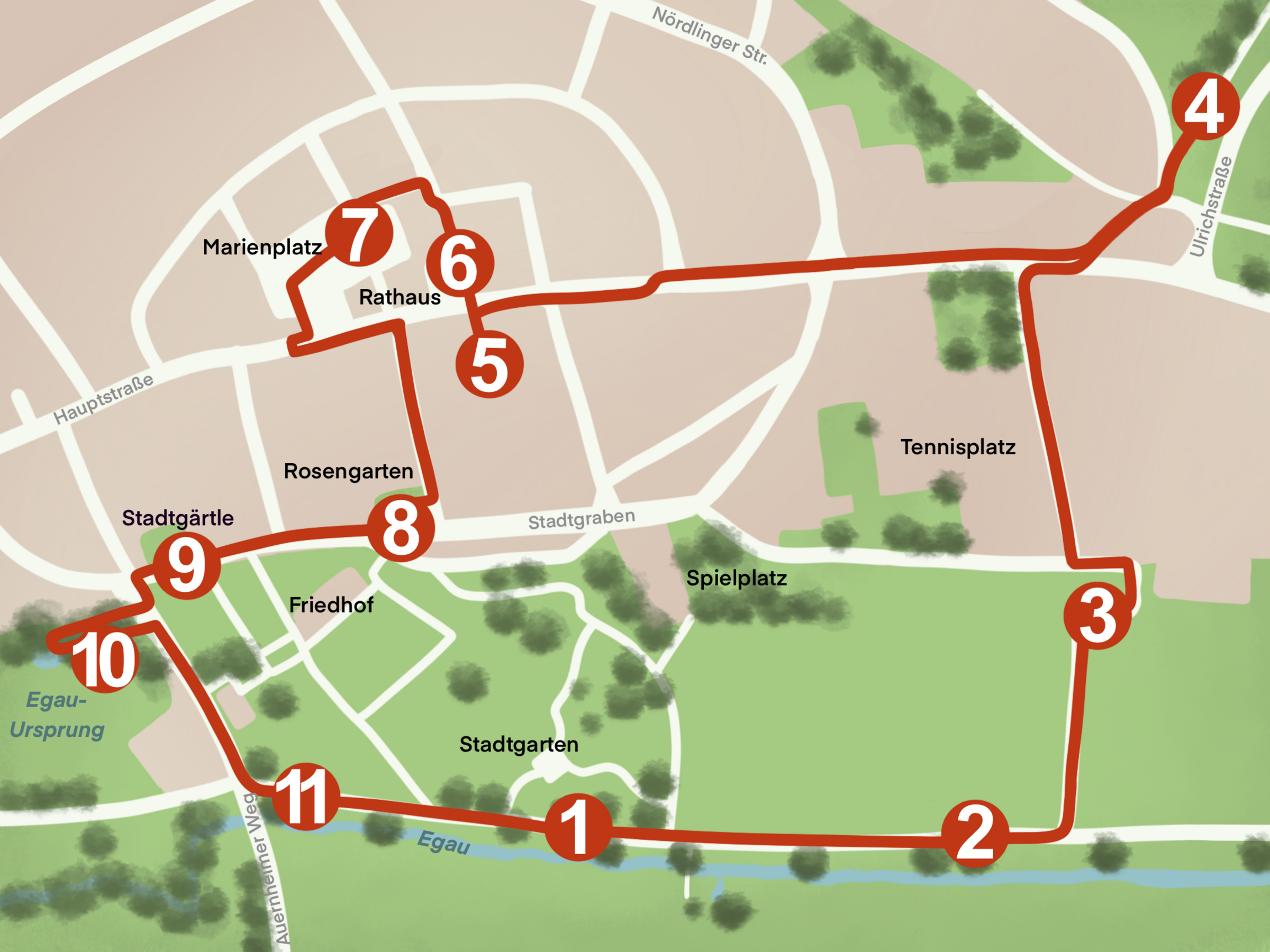 Die elf bunt bemalten Skulpturen des Märchenpfades wurden von der Motorsäge-Künstlerin Hildegard Diemer gestaltet. Alle Figuren sind durch einen Rundweg miteinander verbunden, der im Stadtgarten Neresheim beginnt.