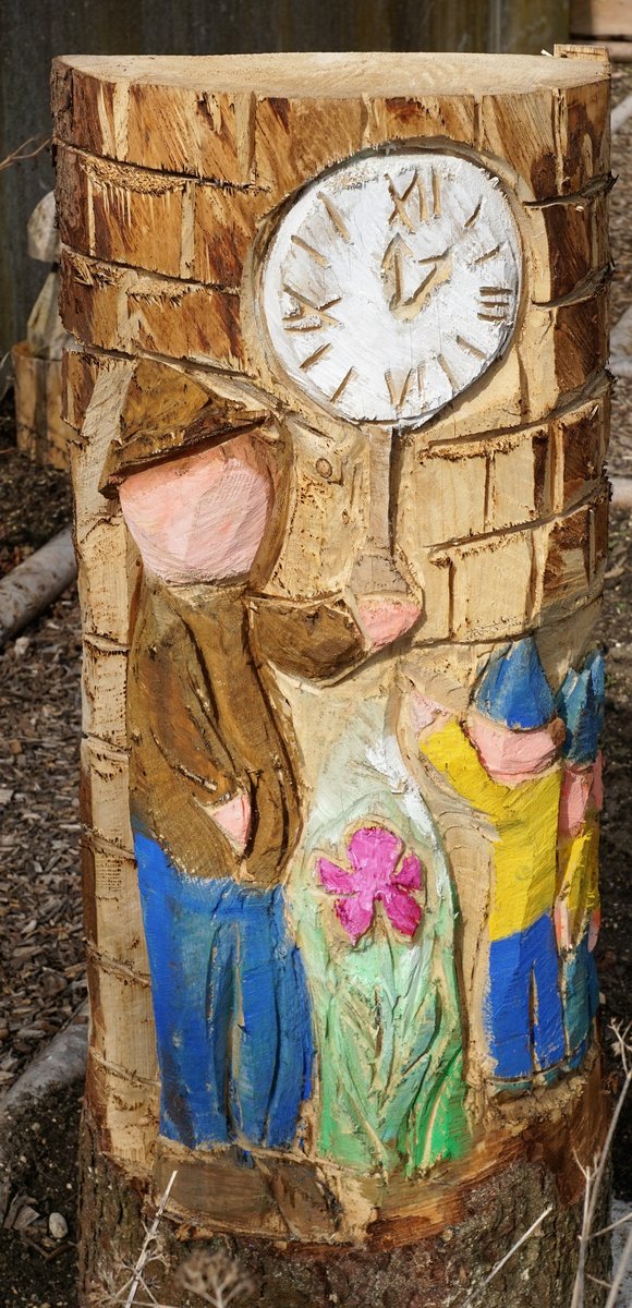 Er stellte die Zeiger und stieß das Pendel an, das sogleich hin und her schwang. Als der Mann nach Hause kam, hörte er schon lautes Blöken, Muhen und Wiehern und als er nachschaute, sah er viele Schafe, Kühe und Pferde im Stall stehen. Das war der Dank der Erdleute gewesen. Das Veilchen aber war ganz golden geworden und der Hirtenjunge hörte seitdem ein feines Ticken, wenn er sein Ohr auf die Erde legte.