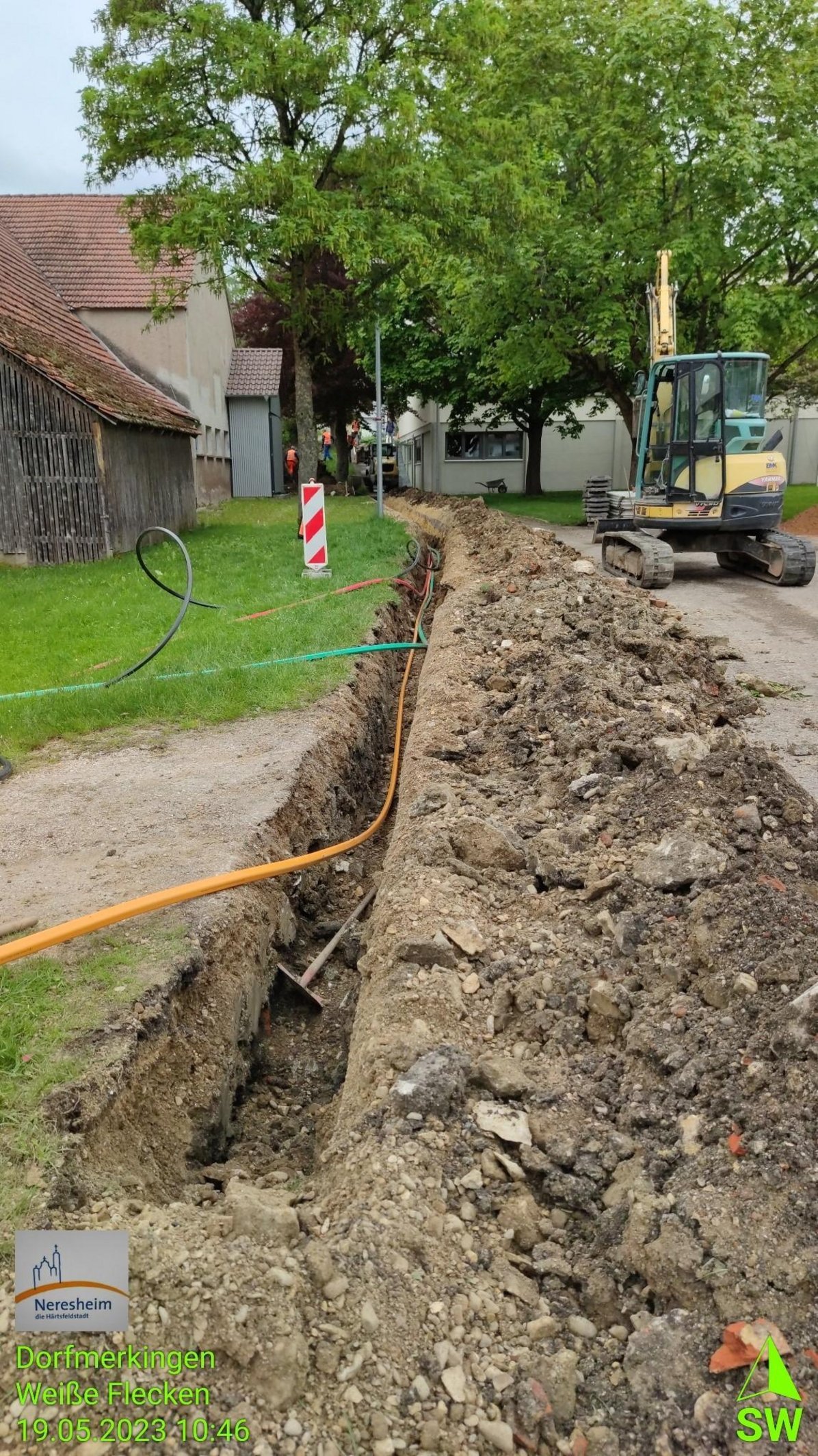 Anschließend folgte der 2. Bauabschnitt, in welchem die Leerrohre von Neresheim izur Eichplatte und parallel dazu in der gesamten Ortschaft Hohlenstein sowie zum Fluertshäuser Hof verlegt wurden.